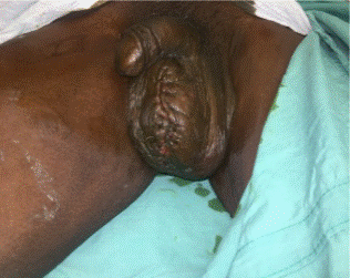 surgery for hydrocele (figure 1). On admission, patient was febrile, toxic with