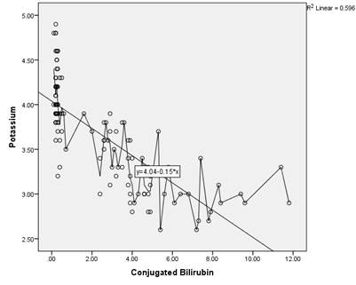 jaundice. Hypokalemia was strongly positively correlated with conjugated