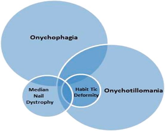 Figure 1. Venn diagram of similar clinical nail disor- ders that can present in different body focused repetitive behaviors [4]