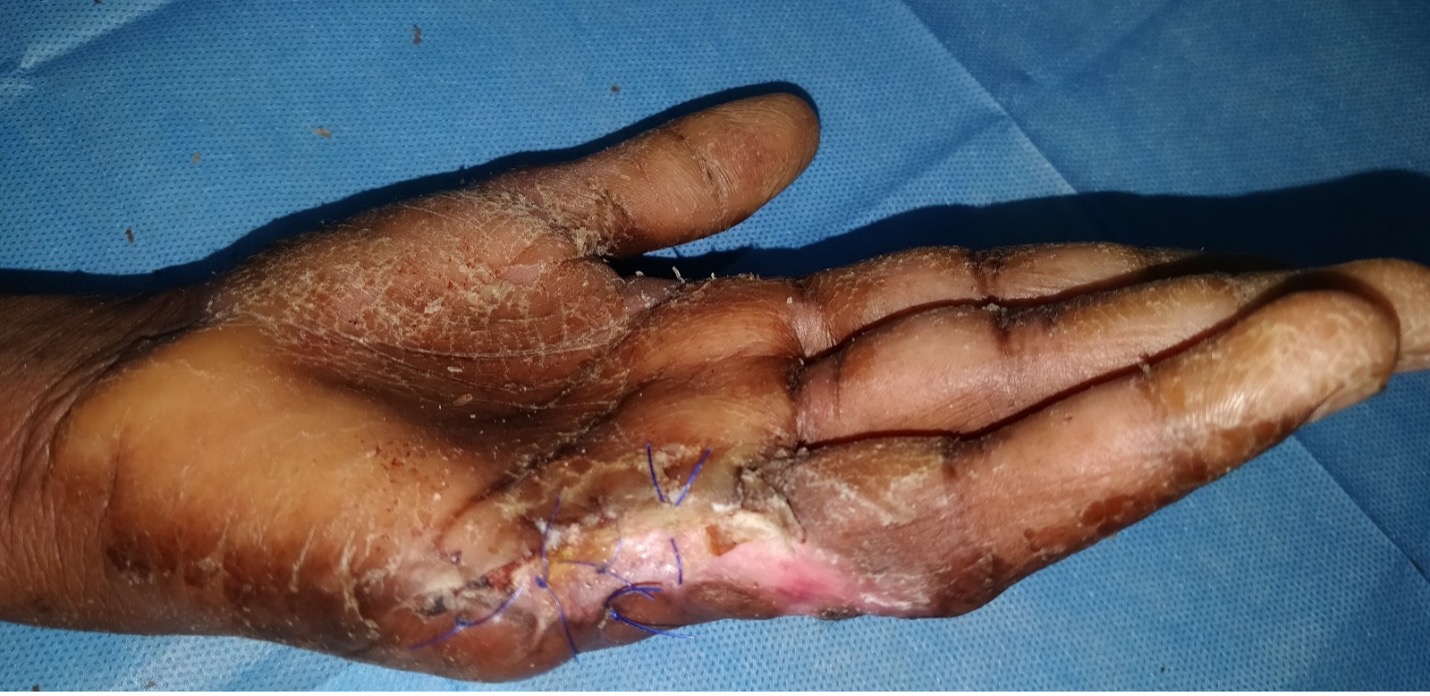 The wound bed showed good granulation tissue (figure 5). Topical cholecalciferol was found to be helpful in wound bed preparation.