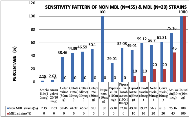 Figure 1. Sensitivity pattern of MBL & non MBL producing Enterobacteriaceae strains.
