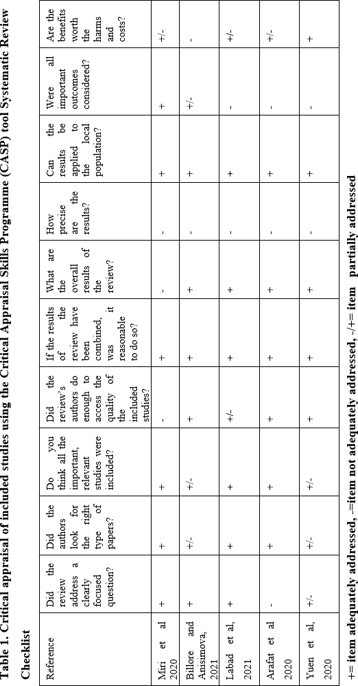 Figure 2. Critical appraisal of included studies using the Critical Appraisal Programme (CASP) tool Sytematic Review Checklist