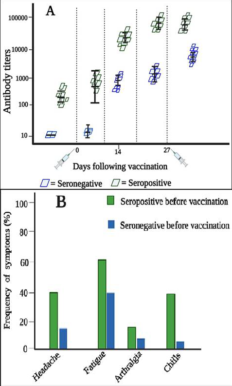 - More systemic side effects reported in previously seropositive subjects after vaccination, frequency was comparatively lower in naïve individuals. [As per Krammer F et. al.,2021]